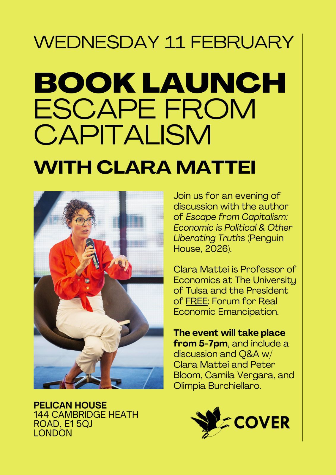 Join us for an evening of discussion with Clara Mattei, author of Escape from Capitalism: Economics is Political & Other Liberating Truths (Penguin House, 2026). Clara will be in conversation with Peter Bloom (University of Essex), Camila Vergara (University of Essex), and Olimpia Burchiellaro (University of Essex).